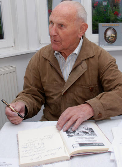 Karl-Heinz Bertsch führt in seine Fotoexponate ein. War schon vor 20 Jahren in der Ausstellung von Karl-Heinz Bertsch, Gustav Bäuerle, einer der ältesten Bürger Schömbergs.
